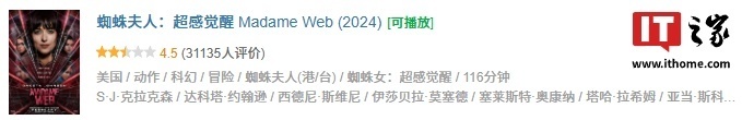 《蜘蛛夫人:超感觉醒》豆瓣评分:4.5